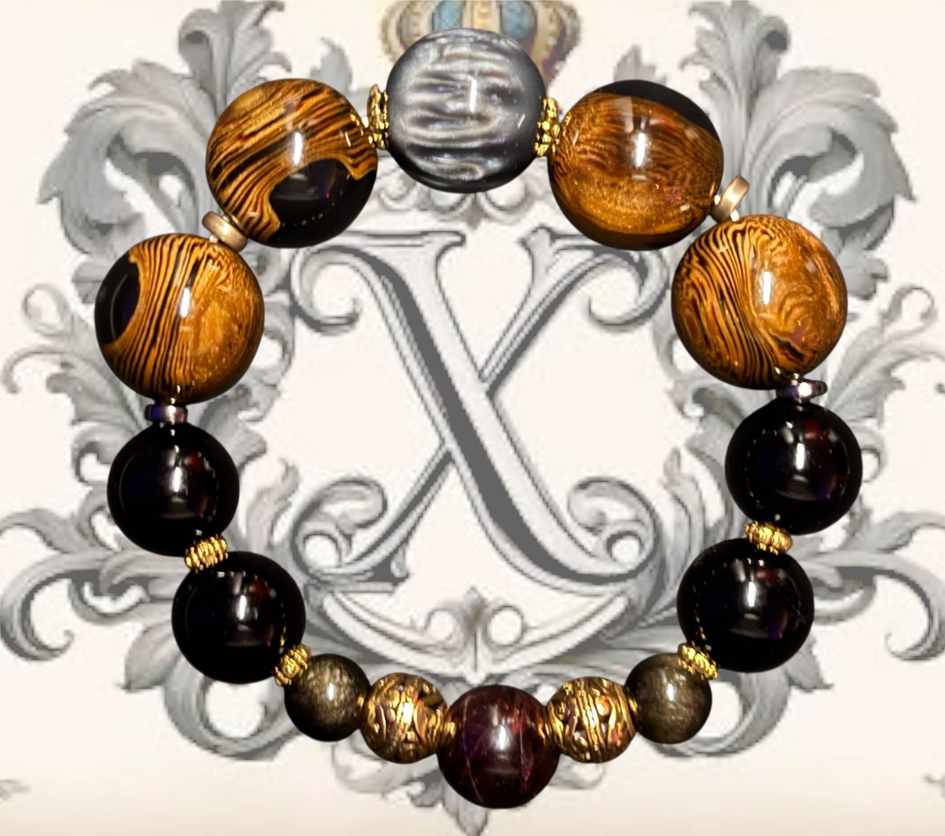 Apex Alpha Mentality or AAM, is a designer line created by the creator of AAM, therefore I named the line after his company. His exact words, "I want an Akuma bracelet", so I extended my search of material and found these 20mm stones. A whole new world opened up for Official Pieces, many different and new styles came about...including the Akuma Series which is dedfined by its use of 20mm stones AND a custom regal base consisting of two crowns engulfing a special stone to the piece (special either in meaning or in color).